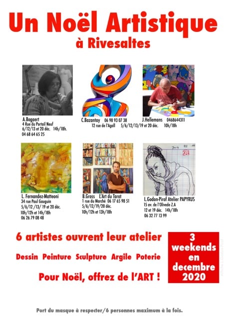 - L’une des sculptures de Agnès Bogaert à son atelier à Rivesaltes? Ou bien un des dessins ou l’une des gravures de Laurence Godon-Pirof? A Rivesaltes, les artistes ouvrent leurs ateliers pour rendre votre Noël plus artistique alors, vous y en aurez l’embarras du choix.