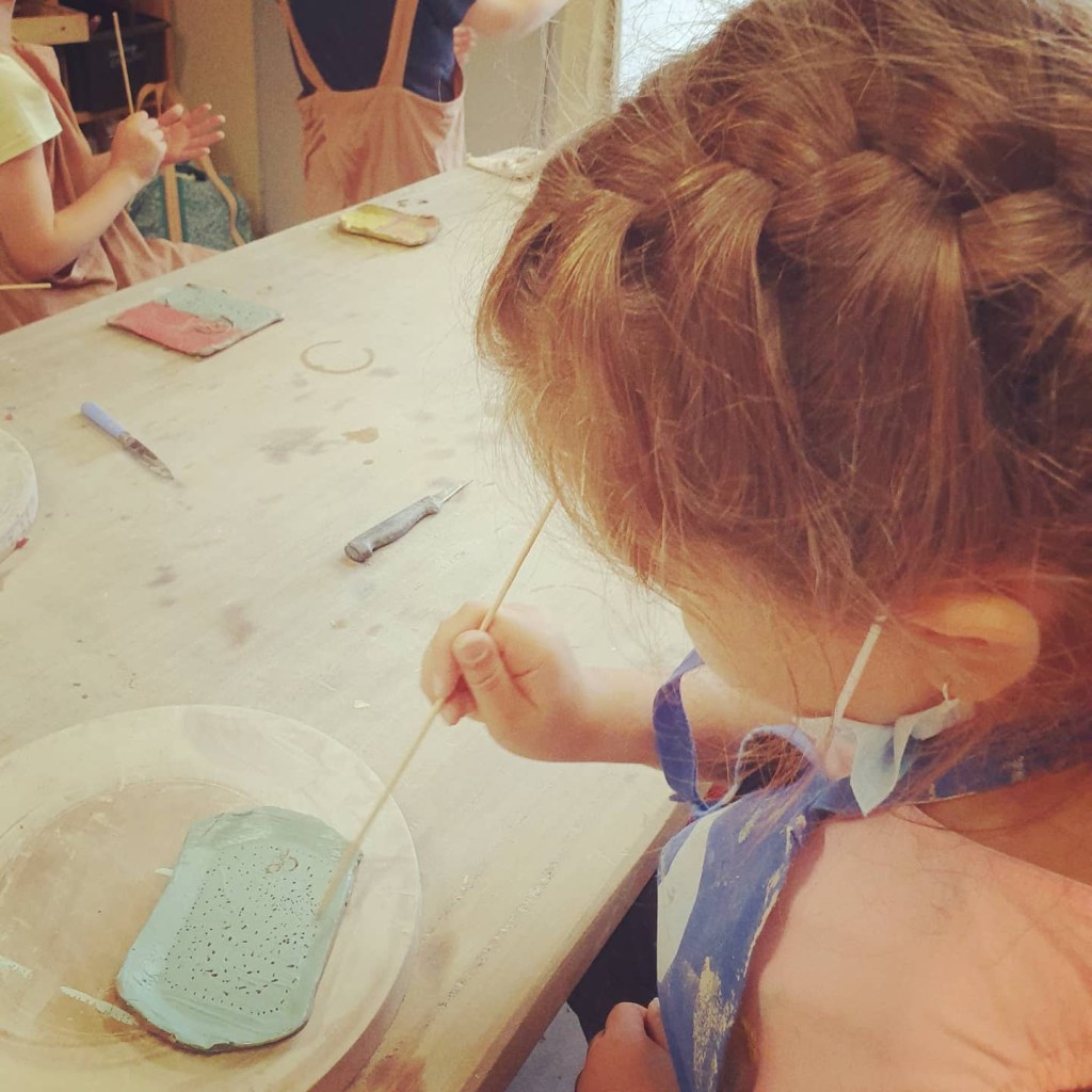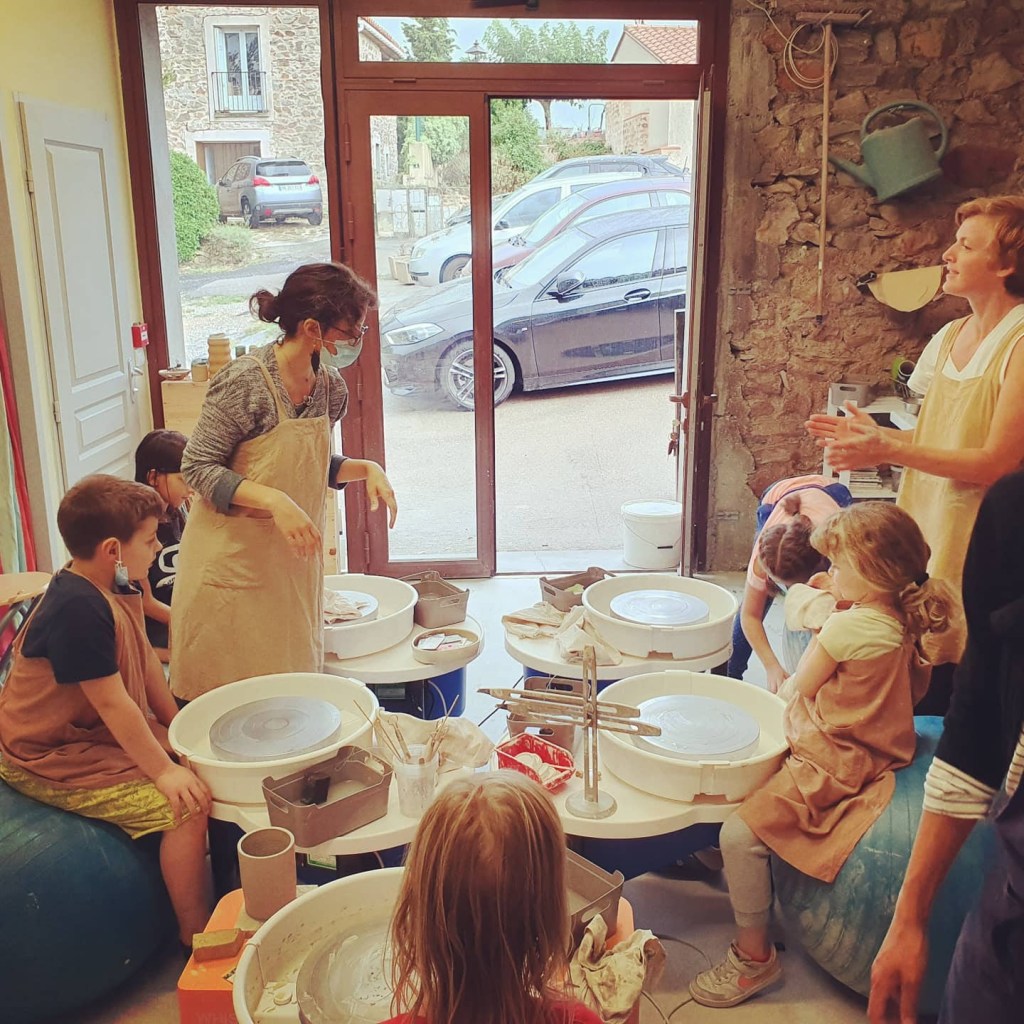 L’après-midi c’était Gaëlle Gouillard, céramiste, qui nous a initié au tournage ainsi qu’à d’autres techniques qu’on utilise pour manier la terre. Quel bonheur de découvrir encore une pratique ancestrale utilisée par tant d’artistes contemporains, entre fou rires et plein de bienveillance.