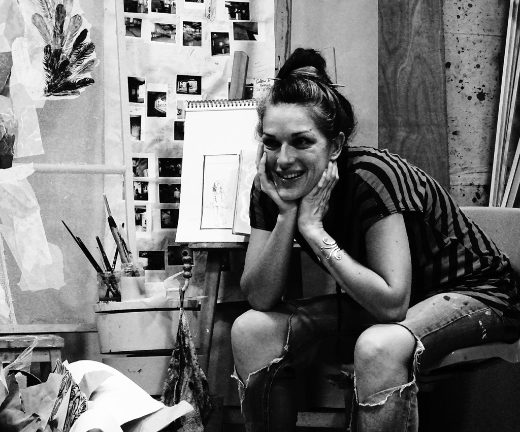 Tiffany VAILIER a étudié les arts plastiques à Strasbourg, où elle se passionne pour la recherche autour de la narration, des textures et graphisme contemporains. Son intérêt pour les arts en général l’ont amenée aussi à collaborer avec le milieu des arts vivants, et à fonder Agit’Hé, structure culturelle associative lui offrant la possibilité de développer des projets multidisciplinaires et collaboratifs. C’est alors qu’elle s’installe dans un village près de Perpignan, puis trouve son atelier de résidence au sein de l’HÉ|SPACE, tiers-lieu artistique créé et géré par Agit’Hé en 2019. Décomplexée et cherchant inlassablement à s’affranchir des limites du cadre et du sujet pour faire de la pratique figurative une expérience poétique et graphique continuelle, sa pratique se déploie dans la multiplicité des techniques, et la variété des supports : en équilibre entre dessin, peinture, collage, gravure, numérique et sculpture, en fonction de l’iconographie étudiée et/ou de l’espace d’exposition. Matériaux récoltés, bruts et alternatifs (plexiglas, bois, textile ajouré et papier) supportent ses interventions dynamiques et franches. Dans ses compositions, elle privilégie le corps, saisi en solo ou en collectif, et toujours approché par un feuilletage complexe, qui préserve la profondeur des lectures. Elle traque une forme de circulation entre les êtres, une étude des forces structurantes qui caractérisent chaque personne, et les liens qui les unissent.