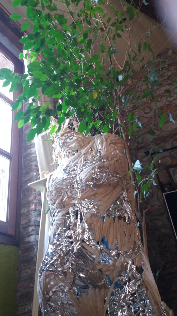 « Le poète québécois Gaston Miron a écrit un très beau recueil s’intitulant L’Homme rapaillé. Adjectif typiquement canadien, celui-ci signifie une constitution faite de plusieurs éléments rassemblés. On pourrait employer ce mot pour qualifier Atlantis d’Agnès Bogaërt. En effet, les matériaux à la fois « offerts » par la nature tels que les coquillages, le buis, le bois sont incorporés aux matières nées de la main de l’Homme comme le grès ou du grillage. Ce savant mélange constitue une œuvre assemblée, une œuvre rapaillée.