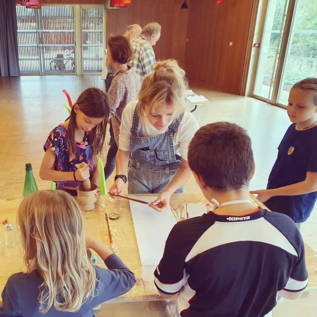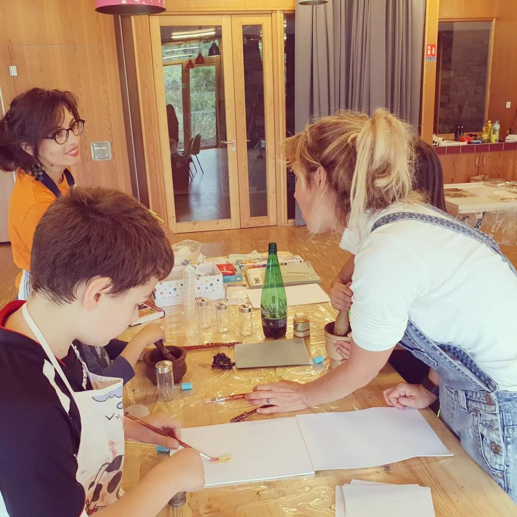 Tout le long de son séjour, l’artiste a intervenu auprès du public par le biais d’ateliers ouverts et de causeries. Hanni Angermann a également travaillé auprès des élèves de l’école élémentaire de Maury, bien comme des élèves de plusieurs formations de l’IDEM Creative Arts School Le Soler, nos partenaires pour ces actions pédagogiques. Pour le travail ouvert au public, l’artiste nous donnera rendez-vous à Calce selon les créneaux proposés ci-dessous. Voici ce qu’elle nous a proposé: