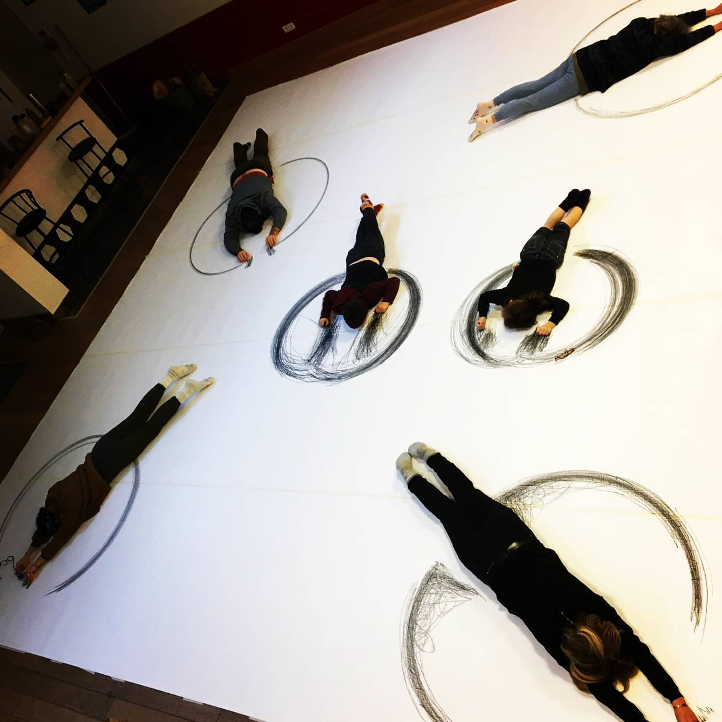 Pour mener ces expérimentations, l’accent sera mis sur le geste à mener en conscience, le corps en mouvement dans le travail artistique ; agir, dessiner, libéré du plan d’action mental. Le geste artistique c’est le geste banal libéré.