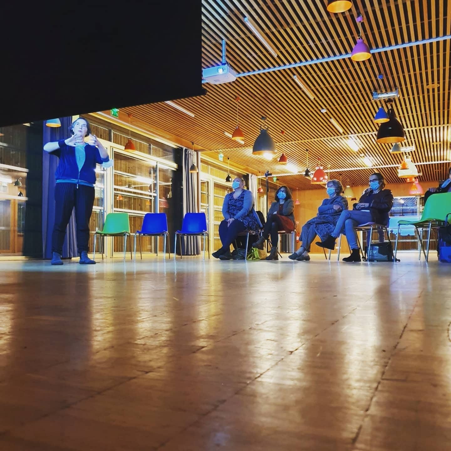 1er temps : les artistes définissent un point de rencontre entre leurs pratiques respectives sur lequel elles souhaitent travailler ensemble et auprès du public.
